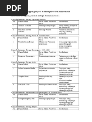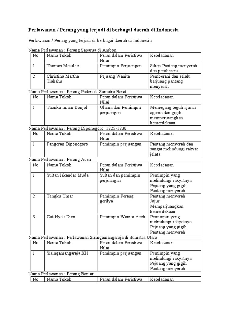 Perlawanan / perang yang terjadi di berbagai daerah di indonesia. Berikut ini adalah beberapa tokoh dalam peristiwa perlawanan terhadap penjajah: Ayahnya antoni mattulessy adalah anak kasimiliali. Perang diponegoro yang juga dikenal dengan sebutan perang jawa (inggris:the java war, belanda: Menurut buku biografi pattimura versi pemerintah yang pertama kali terbit, m.