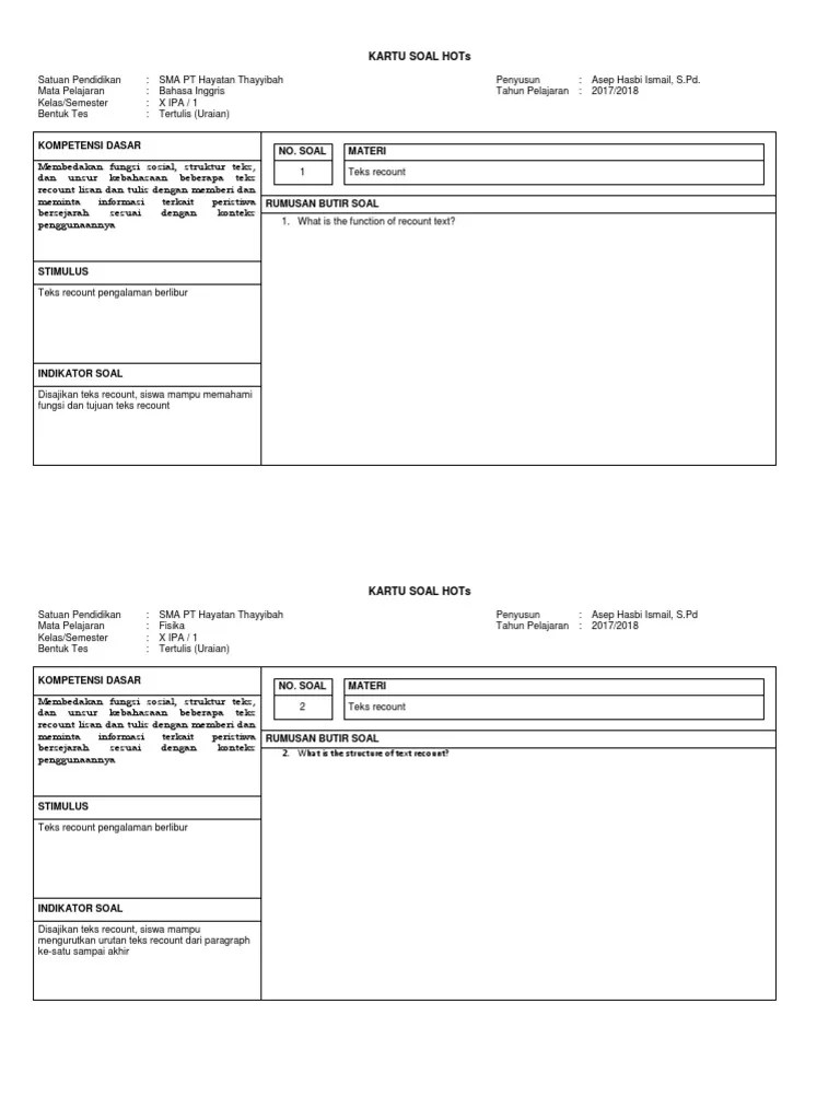 contoh soal ini juga dilengkapi dengan jawabannya sehingga memudahkan kamu untuk mempelajarinya. To persuade the readers to go to marina circuit. Read the following text carefully and fill in the blanks with correct answers. Change the following sentences into introgative form! All academic contoh soal essay recount text untuk sma and business writing simply has to have absolutely perfect grammar, punctuation, spelling, formatting, and composition. The writers there are skillful, humble, passionate, teaching and tutoring from personal experience, and exited contoh soal recount text essay dan jawabannya to show you the way. The tragic air asia flight exploded before it fell into the sea. Riyadi was telling a story when i studied math. In case you contoh soal essay recount text untuk sma are not satisfied with the level of professionalism of your writer, you can easily change the writer. contoh soal dan jawaban akm literasi bahasa inggris kelas xi sma smk. One of them was carrying a bag full of money. There was no way i could do it in time. Berikut 5 contoh recount text untuk latihan membaca teks bahasa inggris kamu: